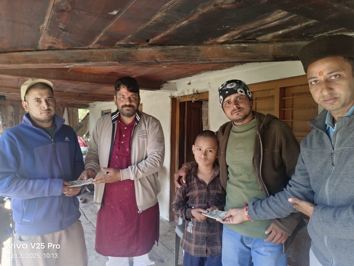 धराली: यमुनाघाटी के लोगों के जनसहयोग से एकत्रित आर्थिक सहायता राशि को धराली गांव के आपदा प्रभावित परिवारों तक पहुंचाया गया। इस नेक कार्य के लिए स्थानीय निवासियों ने मिलकर 1,77,671 रुपये की धनराशि चंदे के रूप में एकत्र की थी, जिसे आपदा में जान गंवाने वाले 8 परिवारों के बीच बांटा गया।