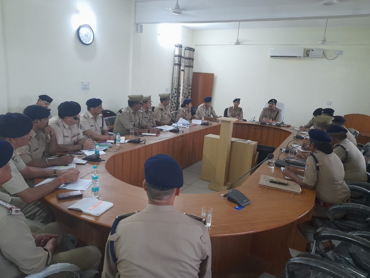 हरिद्वार : पुलिस अधीक्षक रेलवेज उत्तराखण्ड अजय गणपति कुंभार की अध्यक्षता में जीआरपी मुख्यालय हरिद्वार के सभागार में आगामी कांवड़ मेला-2023 को सकुशल सम्पन्न कराने हेतु जीआरपी उत्तराखण्ड, आरपीएफ व सीमावर्ती जीआरपी, आरपीएफ के अधिकारियों के साथ कांवड़ मेले में शान्ति एवं कानून व्यवस्था के सम्बन्ध में समन्वय गोष्ठी आयोजित की गयी । गोष्ठी में पुलिस अधीक्षक रेलवजे उत्तराखण्ड अजय गणपति कुंभार, अपर पुलिस अधीक्षक रेलवेज उत्तराखण्ड अरुणा भारती, पुलिस उपाधीक्षक रेलवेज सहारनपुर यूपी श्वेता अशूतोष ओझा, सहायक सुरक्षा आयुक्त आरपीएफ उ0रे0 हरिद्वार वीके मिश्रा, प्रतिसार निरीक्षक जीआरपी लाईन बिपेन्द्र सिंह, प्रभारी निरीक्षक जीआरपी देहरादून त्रिवेन्द्र सिंह राणा, प्रभारी निरीक्षक जीआरपी सहारनपुर उत्तर प्रदेश संजीव कुमार झा, प्रभारी निरीक्षक आरपीएफ सहारनपुर उत्तर प्रदेश मोहित त्यागी, प्रभारी निरीक्षक आरपीएफ हरिद्वार डी0एस0 चौहान, प्रभारी निरीक्षक आरपीएफ देहरादून जय सिंह, प्रभारी निरीक्षक आरपीएफ लक्सर कृष्ण गोपाल, थानाध्यक्ष नजीबाबाद उत्तर प्रदेश सुभाष तोमर, थानाध्यक्ष जीआरपी हरिद्वार अनुज सिंह, थानाध्यक्ष जीआरपी लक्सर ममता गोला, उपनिरीक्षक चौकी जीआरपी टपरी सहारनपुर तारीख वसीम, उपनिरीक्षक आरपीएफ रुड़की राम भरोसे, उपनिरीक्षक आरपीएफ हरिद्वार महावीर नेगी, उपनिरीक्षक आरपीएफ टपरी विरेन्द्र कुमार आदि उपस्थित रहे।